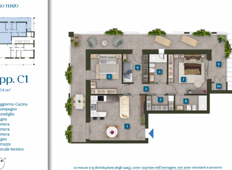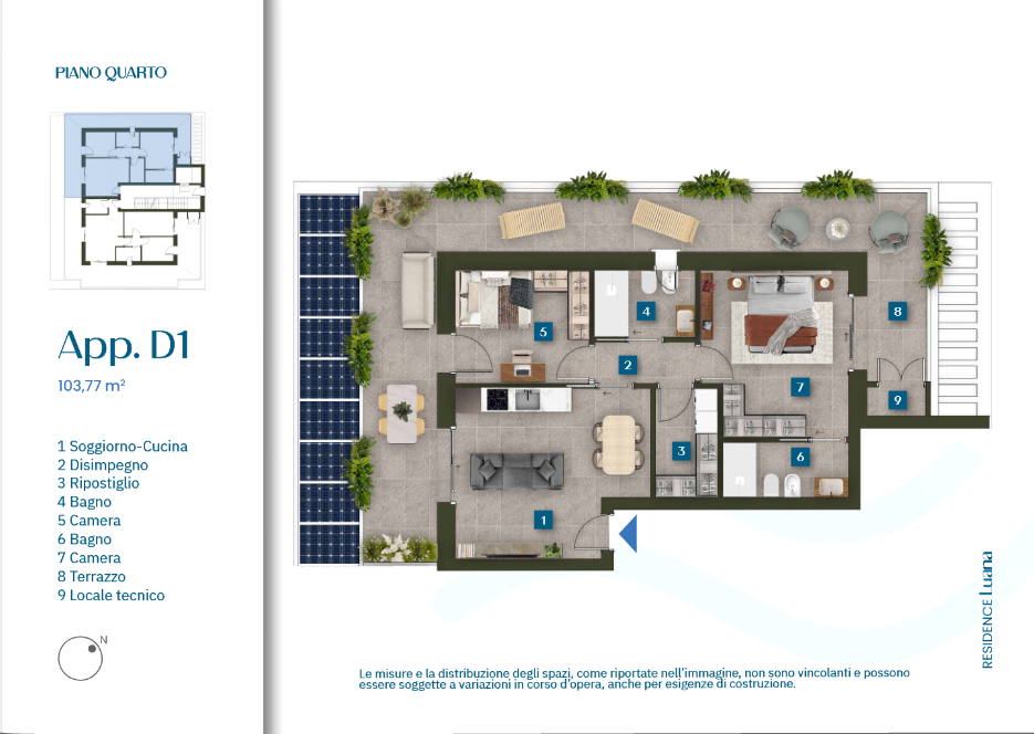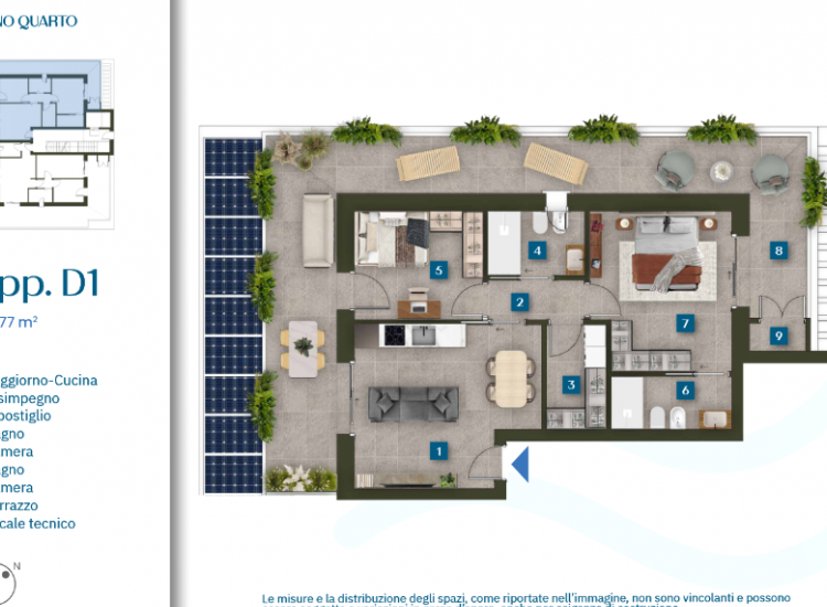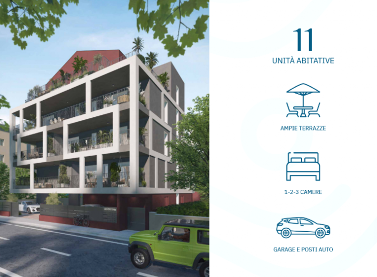 Si tratta di un nuovo fabbricato formato da 11 unità abitative distribuite su 4 piani con ascensore che è stato concepito tenendo ben presenti le esigenze legate al benessere abitativo sia invernale che estivo. Tutta la progettazione è stata condotta per ottenere il miglior mix fra le esigenze di massimo comfort possibile e la sostenibilità dal punto di vista ambientale e dei costi di gestione legati all'utilizzo delle abitazioni. Ottimo isolamento dell'involucro edilizio - Impianto fotovoltaico sia a servizio delle parti comuni condominiali sia una parte per ogni singola unità - Sistema di riscaldamento radiante a pavimento - Impianto di climatizzazione del tipo multisplit in pompa di calore (caldo/freddo) - Avvolgibili motorizzati - Serramenti esterni in alluminio - Zanzariere - Domotica - Predisposizione impianto antiintrusione - Disponibili appartamenti bilocali-trilocali-quadrilocali da arredare alcuni dispongono di ampie terrazze abitabili - Possibilità di acquistare un posto auto privato coperto al piano terra con predisposizione per colonnina di ricarica auto elettrica - Possibilità di beneficiare del Sismabonus acquisti