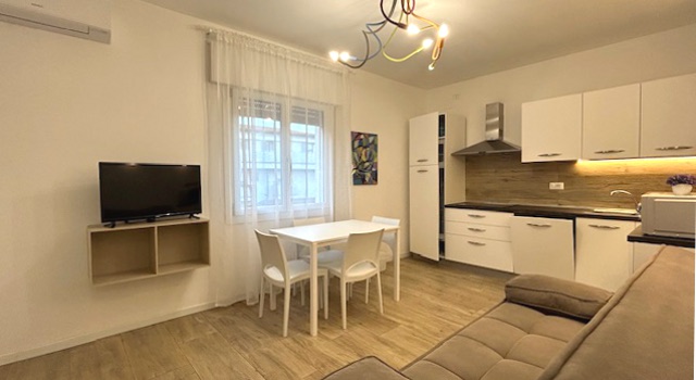 Trattasi di un bel trilocale completamente ristrutturato posto al piano secondo di una piccola palazzina ubicata in zona centrale a pochi passi dalla spiaggia di ponente e dal Viale Santa Margherita. L'immobile è composto da: soggiorno-pranzo con angolo cottura, ripostiglio/camera con 2 letti singoli a scomparsa, disimpegno, camera con letto matrimoniale e 2 letti singoli a scomparsa, bagno finestrato con box doccia. L'appartamento viene venduto completamente arredato e dispone del riscaldamento/raffrescamento in pompa di calore. Predisposizione impianto allarme. Spese condominiali contenute - Zona servita - Pronta consegna