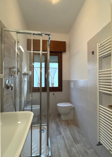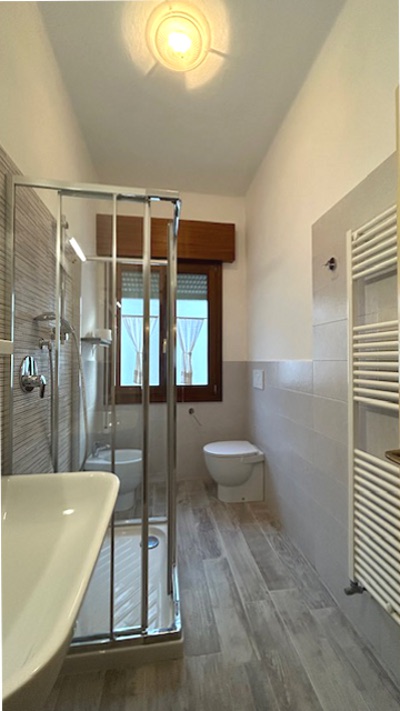 Trattasi di un ampio appartamento posto al primo piano di una piccola palazzina costituita da sole sei unità immobiliari. L’appartamento ha tre lati liberi ed è molto arioso. Composto da: ingresso, grande soggiorno, cucina separata abitabile, disimpegno, due camere da letto, bagno finestrato e ripostiglio. Al piano terra un comodo magazzino/ripostiglio. Il bagno è stato completamente ristrutturato. L’immobile viene venduto arredato, con riscaldamento autonomo completo di caldaia e radiatori, climatizzatore con pompa di calore. Non ci sono spese condominiali. Posizione centrale e vicina alla spiaggia. Pronta consegna